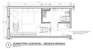 Dormitório acessível – área de circulação mínima – NBR 9050 (2020)
